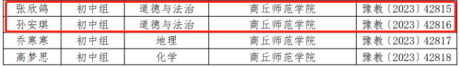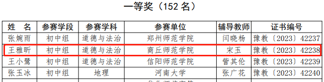 日前,河南省教育厅下发《关于公布第二十届高等学校师范类专业毕业生教学技能比赛结果的通知》(教师〔2023〕209号),威廉希尔官网数据思想政治教育专业2023届毕业生王雅昕获得初中组道德与法治学科一等奖,张欣鸽、孙安琪获得初中道德与法治学科三等奖,宋玉老师获得优秀辅导教师奖。