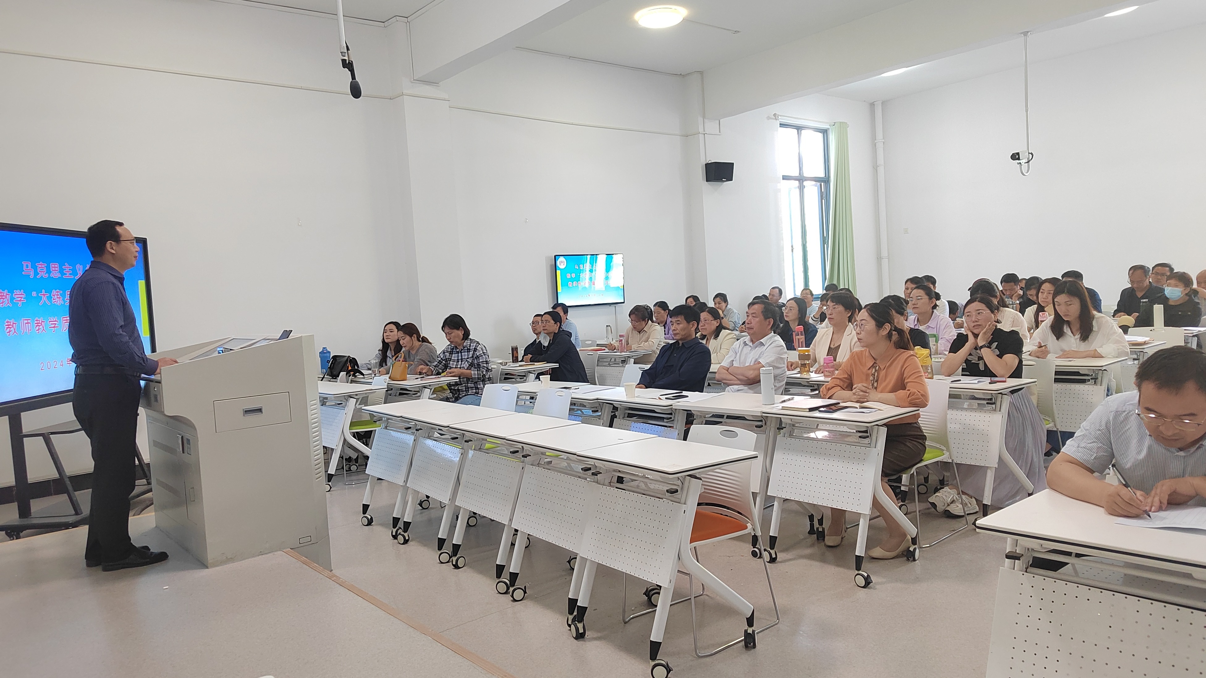 4月26日,我校组织开展了2024年思想政治理论课教学技能“大练兵”活动,全体思政课教师参加了此次活动。