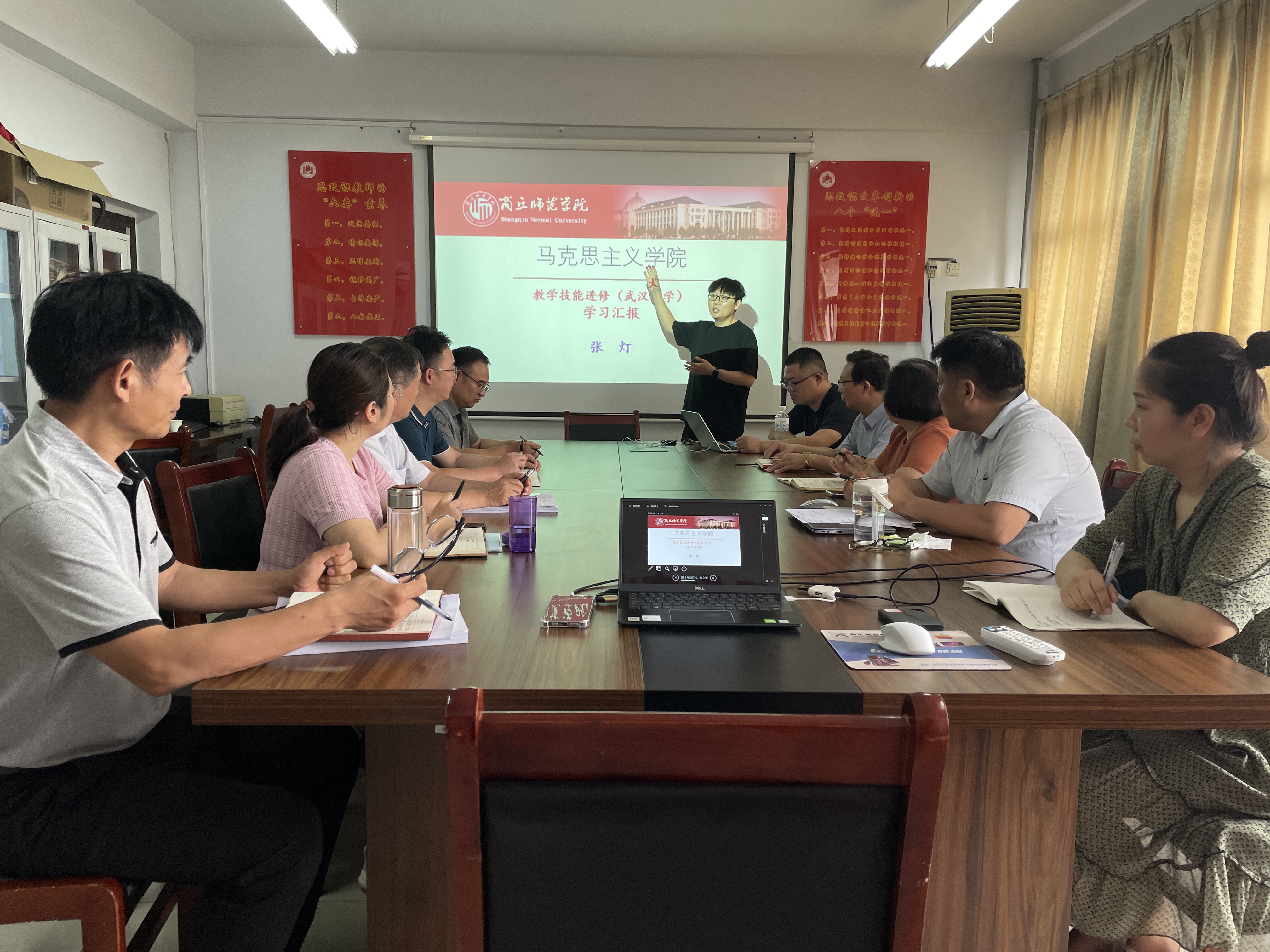 张灯博士就《思想政治教育方法论》《思想政治教育研究方法》等课程学习的情况进行了汇报:通过系统化课程研修与立体化教研实践,实现了从教育理念到教学能力的提升,为今后课程教学奠定了扎实的基础。同时,张灯博士在教学实践中,踊跃参加武汉大学组织的第9期进修教师教学工作坊教学竞赛,将课程学习成果深度融入教学设计,荣获二等奖。最后,通过深入学习“参与式传播”“沉浸式体验”“跨学科融合”等理念,感悟从传统教育模式向创新育人范式的新转变,深刻发现自身不足,从而在今后的学习和工作中,努力提升综合素养,更好地发挥作为思政课教师应有的作用。