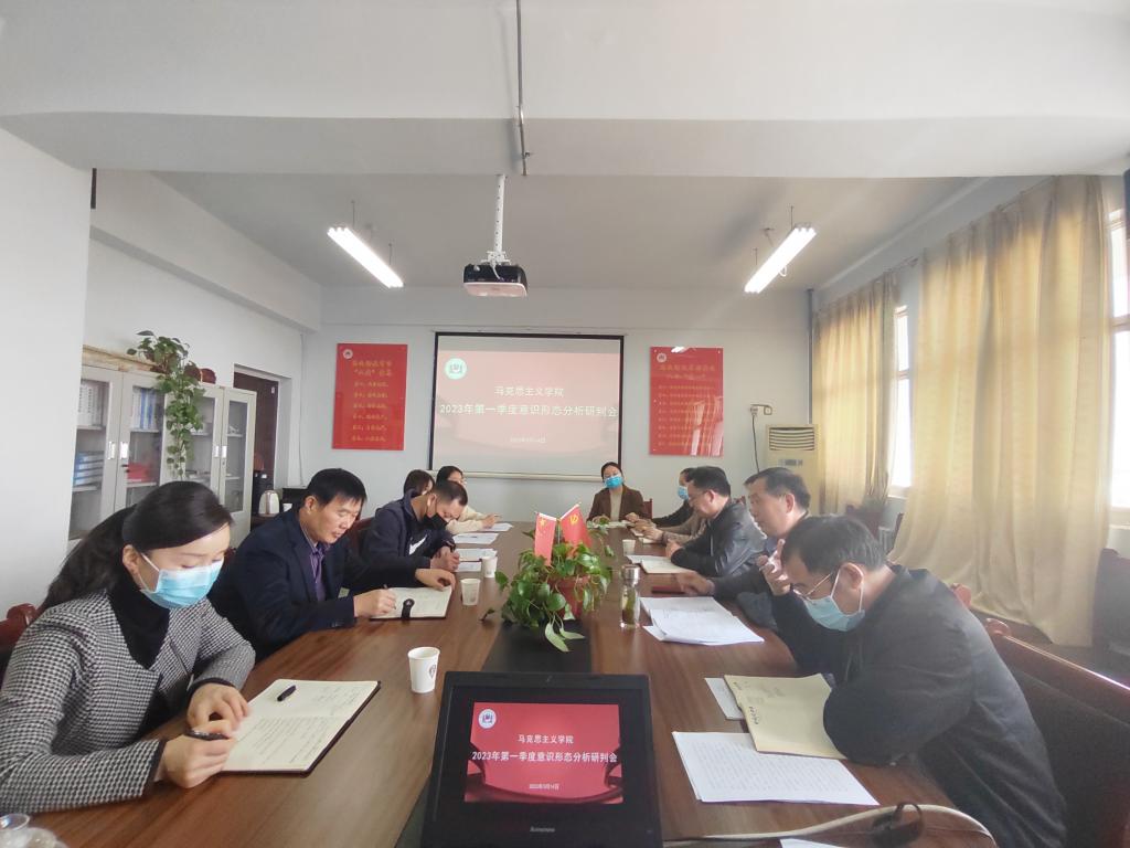 2023年3月14日下午,威廉希尔官网数据在应天楼809会议室召开2023年第一季度意识形态工作分析研判会议。校党委副书记、工会主席朱伟,学校意识形态工作专项督查组成员、法学院党委书记王庆,党委宣传部精神文明建设办公室主任李庆军一行莅临指导。学院党委书记龚志宏、院长司永海、党委副书记张文涛、辅导员、班主任、学生代表等参加会议。会议由院党委书记龚志宏主持。