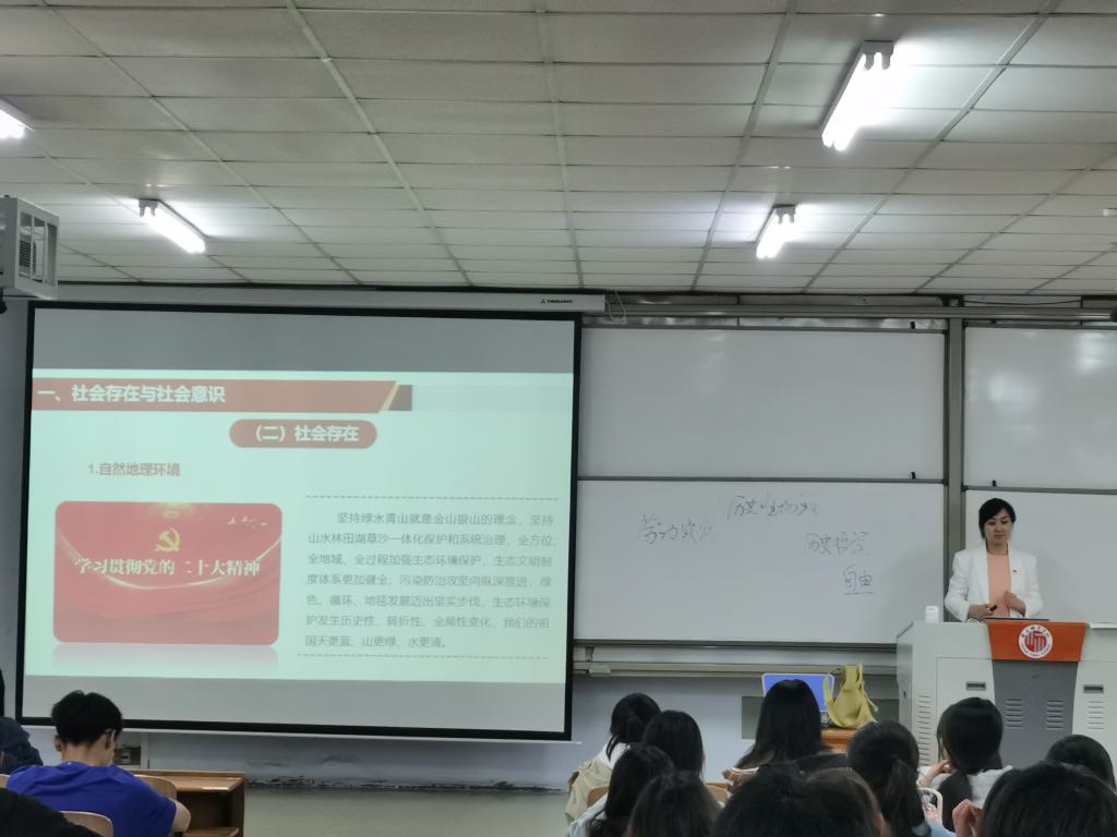 为学习宣传贯彻党的二十大精神,落实习近平新时代中国特色社会主义思想“三进”工作,实施“党建+”活动模式,4月13日下午,马克思主义基本原理教研室开展“党员示范课”活动,威廉希尔官网数据全体院领导、院督导、新进青年教师以及原理教研室的部分教师观摩了教工党员袁蕊老师的教学示范课。