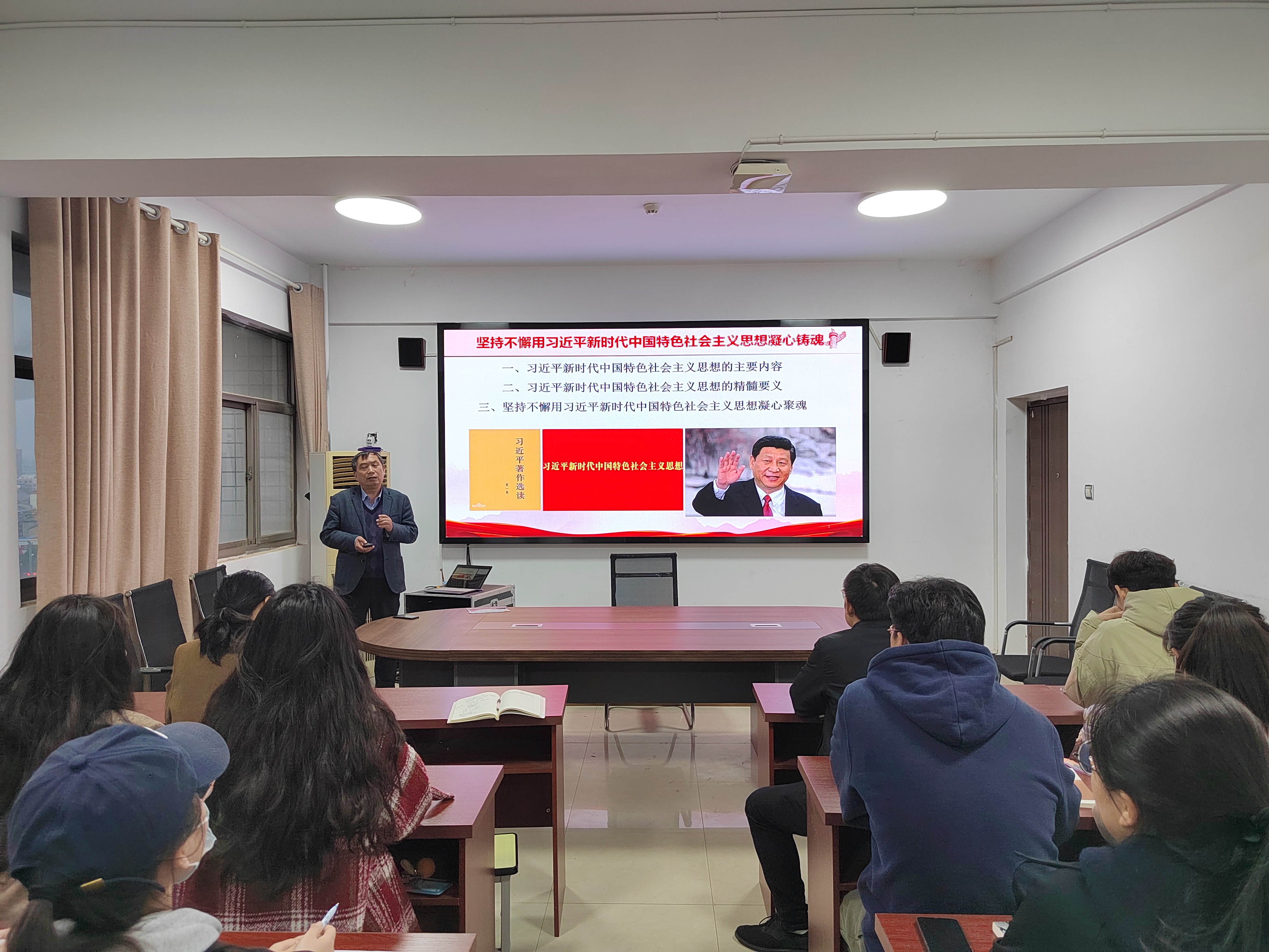 4月23日,威廉希尔官网数据党委书记龚志宏教授在应天楼817为学生党支部学生党员上了题为《坚持不懈用习近平新时代中国特色社会主义思想凝心聚魂》的专题党课。