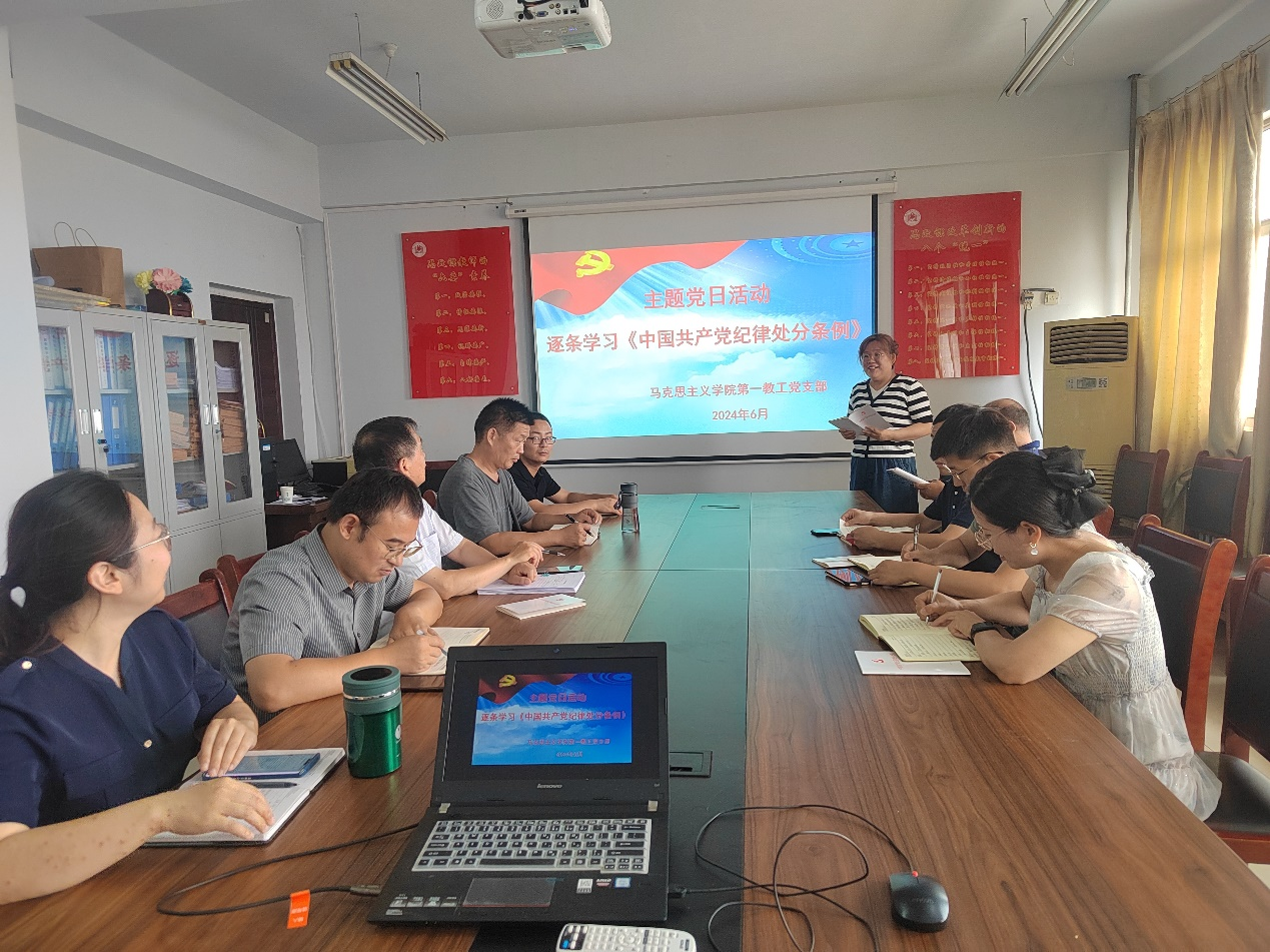 6月7日上午,按照《威廉希尔官网数据党纪学习教育工作方案》安排,威廉希尔官网数据第一教工党支部开展“逐条学习《中国共产党纪律处分条例》主题党日活动”。活动由支部书记刘志筠主持,全体支部成员参加学习活动。