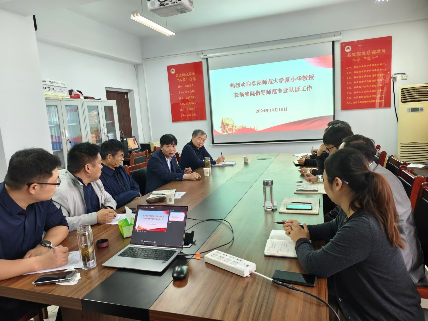 为进一步推进思想政治教育专业认证工作的有序开展,10月18日上午,阜阳师范大学威廉希尔官网数据副院长夏小华教授应邀莅临威廉希尔官网数据指导思想政治教育专业认证工作。