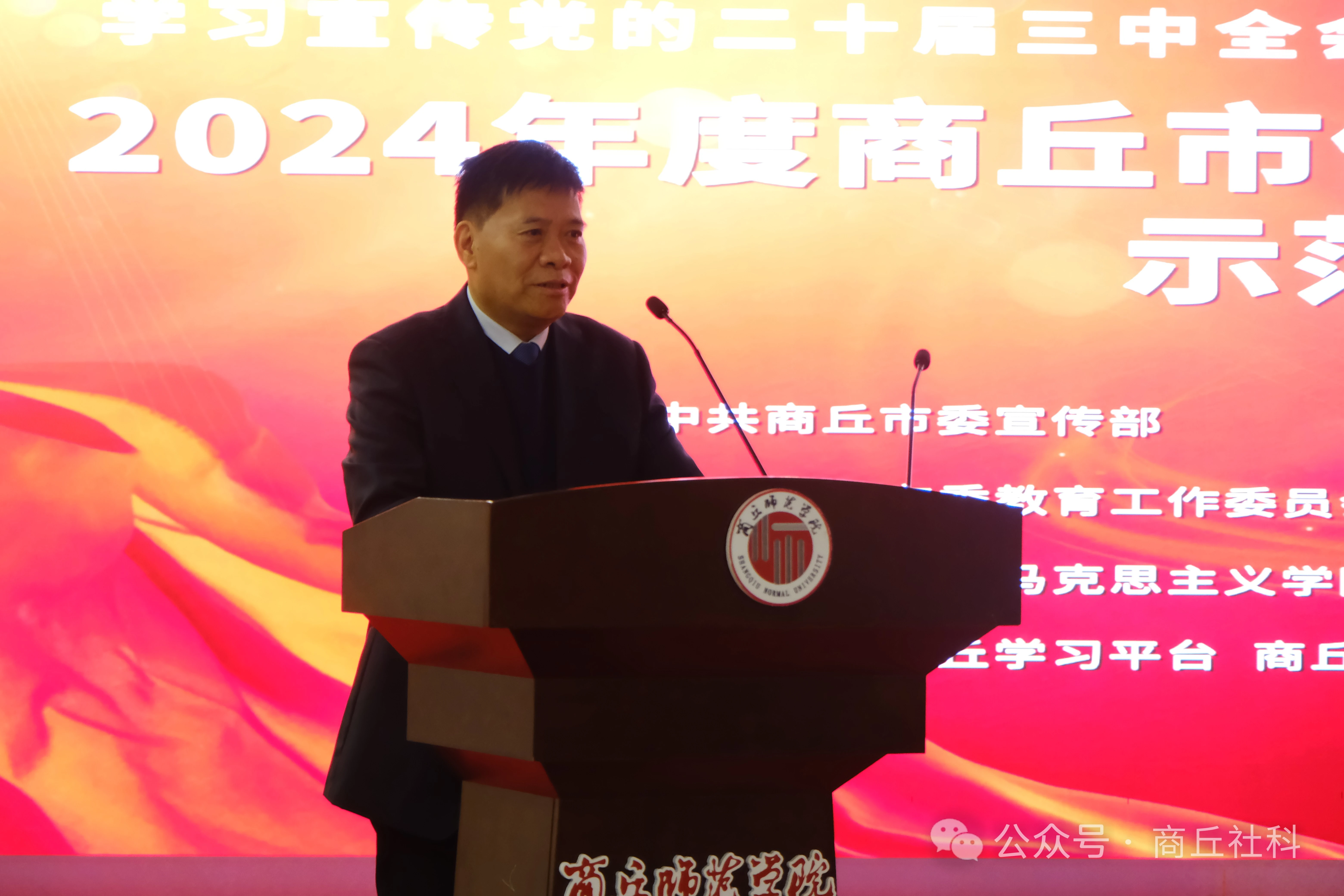 此次活动由商丘市委教育工作委员会、商丘市社会科学界联合会、商丘市教育体育局、河南日报社商丘分社主办,威廉希尔官网数据威廉希尔官网数据、威廉希尔官网数据音乐学院、威廉希尔官网数据团委、商丘广播电视台、学习强国商丘学习平台、商丘市文化旅游投资集团有限公司、商丘市影视动漫协会协办,旨在学习宣传党的二十届三中全会精神,网络思政育新人,培根铸魂谱新篇。威廉希尔官网数据党委副书记吴金山致辞,商丘市社会科学界联合会党组书记、主席陈星讲话。