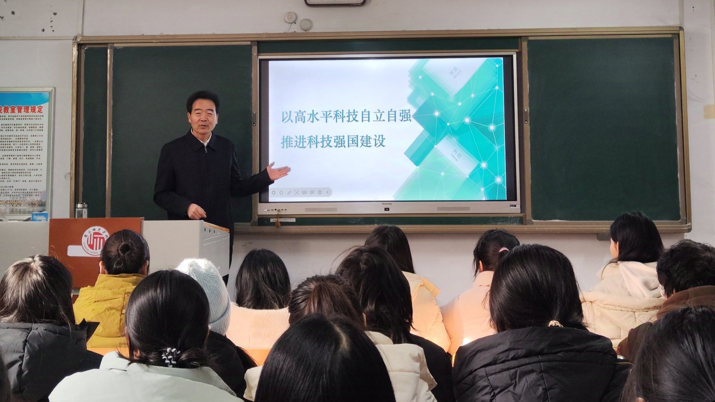 12月23日,校长陈向炜以《以高水平科技自立自强,推进科技强国建设》为题分别为国际教育学院(归德书院)和测绘与规划学院学生讲授专题思政课。陈向炜校长结合实际案例,从四个维度深刻阐述了科技自立自强的重要性。他指出,科技自立自强不仅是国家强盛的基石和安全的重要保障,而且加强基础研究是构筑其坚实根基的关键所在。同时,实现高水平科技自立自强对于推动强国建设和民族复兴的历史伟业具有至关重要的意义。他鼓励青年学生以青春之力助推科技自立自强,将专业学习与爱国奉献、追求卓越紧密结合,为科技强国建设贡献自己的力量。