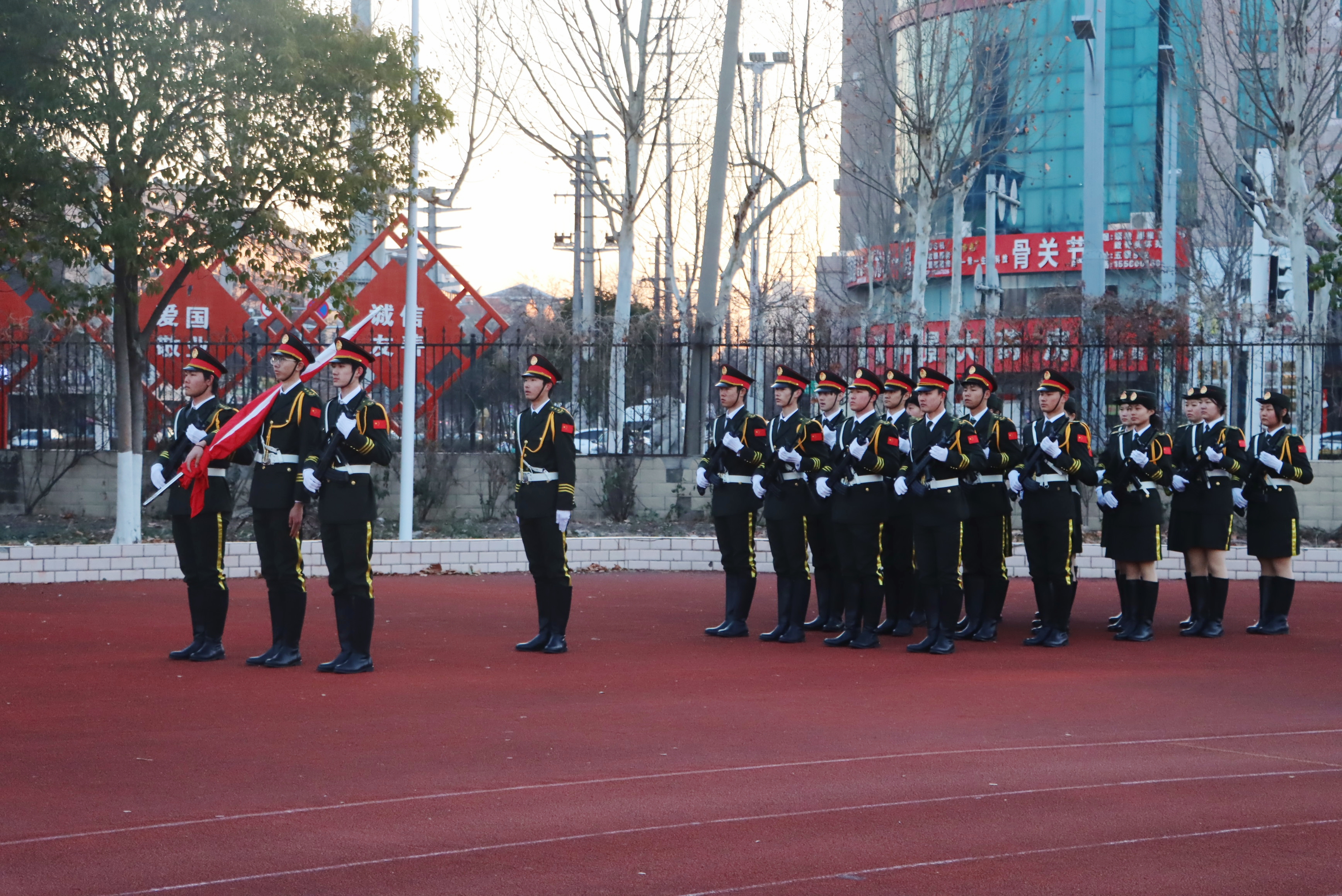 7时0分,升旗仪式正式开始。国旗护卫队迈着整齐划一、铿锵有力的步伐,护送着五星红旗正步走向旗杆。全体师生肃立,伴随着激昂的《义勇军进行曲》,鲜艳的五星红旗冉冉升起。