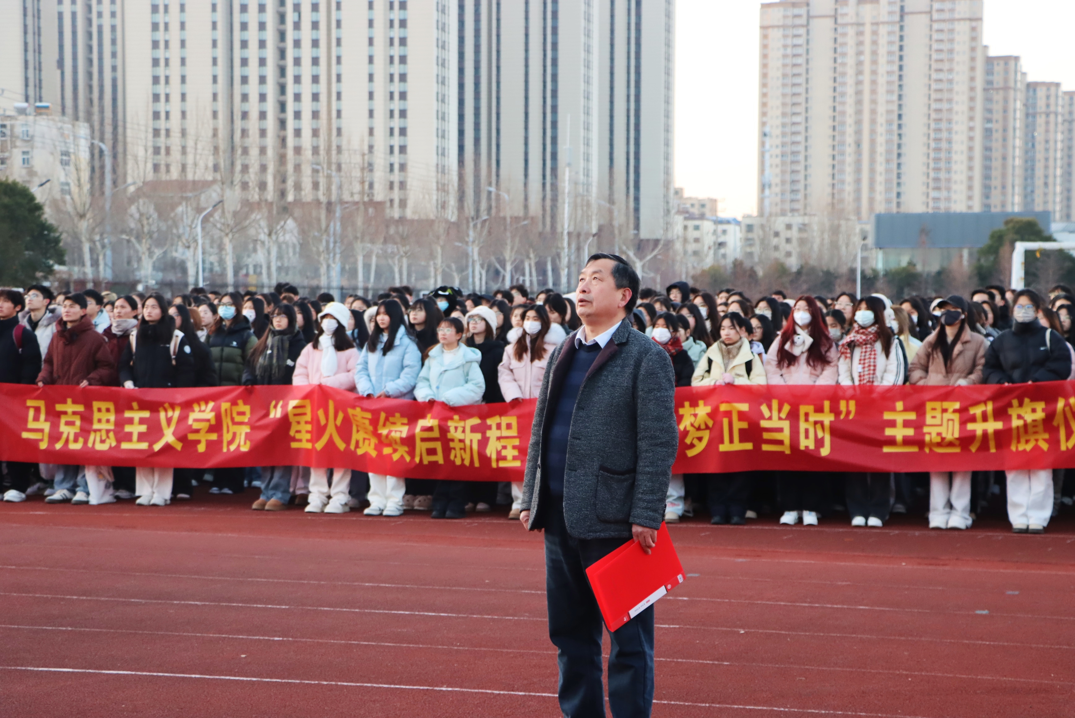 为深入学习贯彻党的二十届三中全会精神,激励广大青年学子坚定理想信念,勇担时代使命,2月24日清晨,威廉希尔官网数据举行“星火赓续启新程,青春逐梦正当时”主题升旗仪式,威廉希尔官网数据全体领导班子成员、学生处相关同志、班主任、辅导员、全体学生共600余人参加仪式。仪式由院党委书记龚志宏主持。