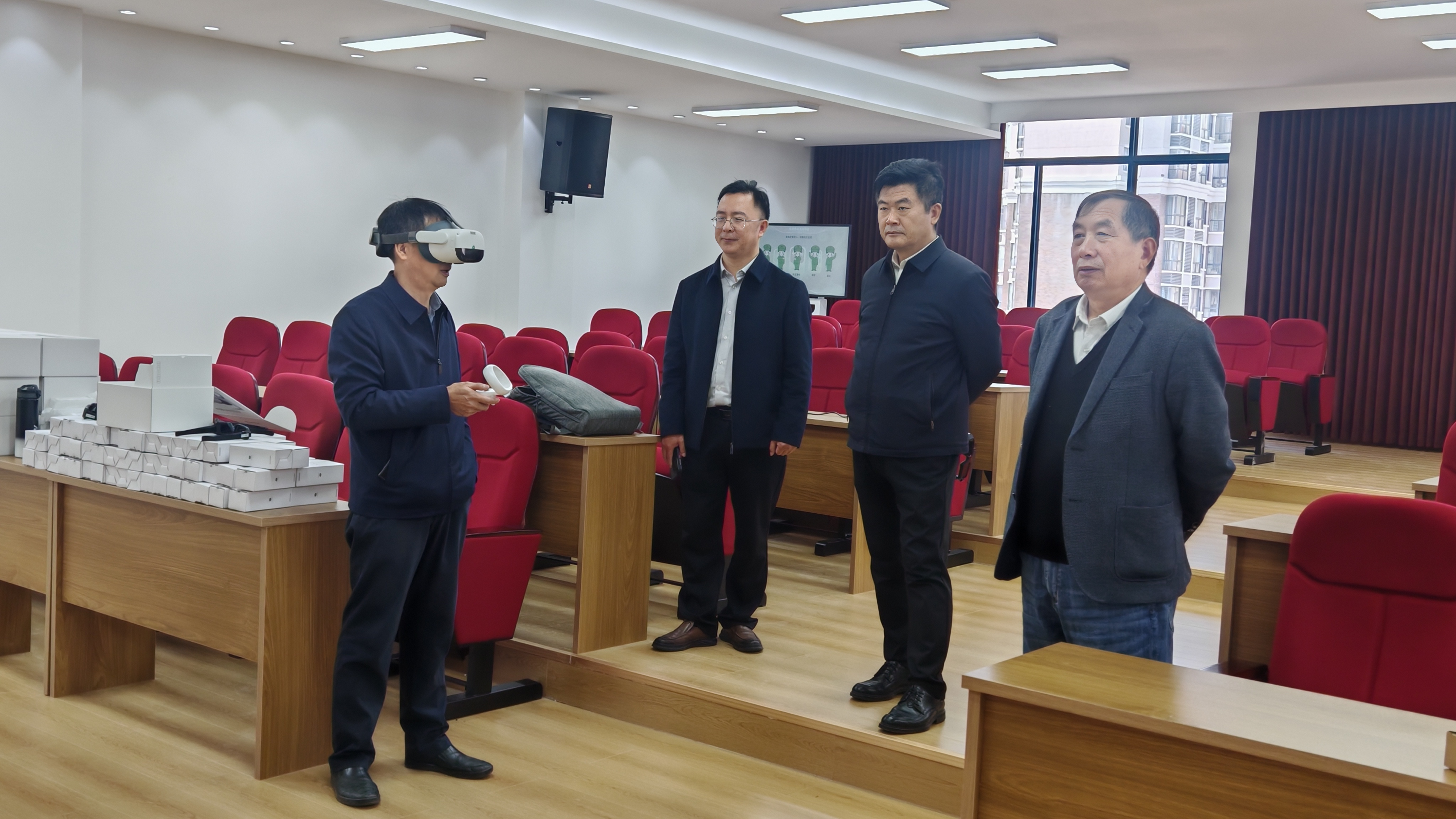 威廉希尔官网数据院长司永海对专业认证工作进行了汇报。张尚字认真查阅自评报告、人才培养方案、课程教学大纲、试卷、毕业论文、实习实践等材料,并走进威廉希尔官网数据VR党建思政实践育人中心,现场体验教学设备。