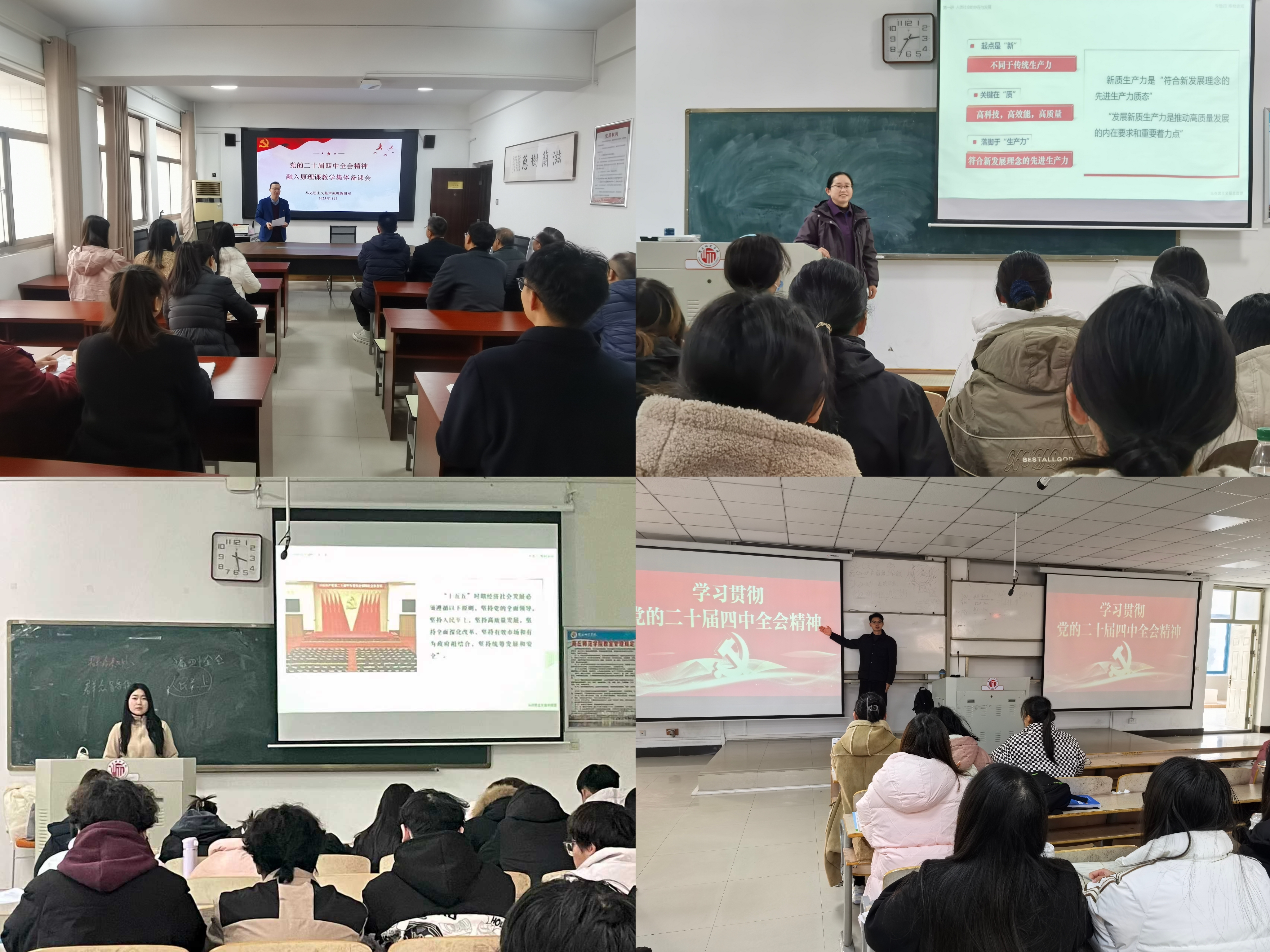 在习近平新时代中国特色社会主义思想概论教研室召开的专题集体备课会上,教师们经过热烈讨论,确定了《习近平新时代中国特色社会主义思想概论》课的若干融入点:在第二章“以中国式现代化全面推进中华民族伟大复兴”章节,重点融入全会关于中国式现代化宏伟蓝图与战略部署的新论述;在第三章“坚持党的全面领导” 章节,结合全会关于党的建设新部署,解析党的领导与国家治理现代化的内在联系;在第四章“坚持以人民为中心”章节,结合全会关于民生的相关部署,强化学生对以人民为中心发展思想的理解;在第五章“全面深化改革”章节,紧扣全会改革新举措,阐释改革对高质量发展的保障作用;在第六章“推动高质量发展”章节,重点融入“六个坚持”原则、“建设现代化产业体系”“加快高水平科技自立自强”等重要部署;在第十三章“维护和塑造国家安全”章节,紧密结合全会对维护国家安全和社会稳定的系列要求,强化学生对总体国家安全观的理解,等等。