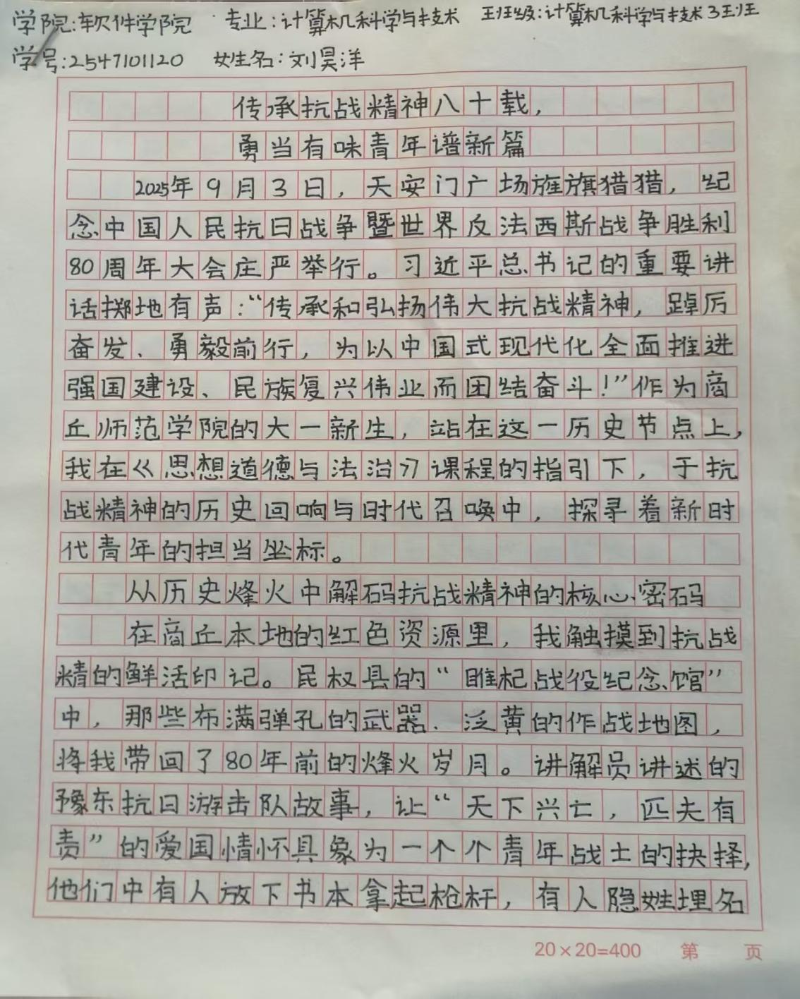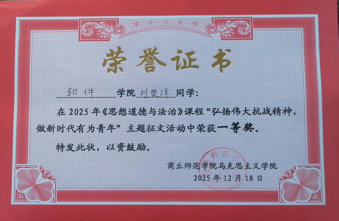本次实践教学紧扣“弘扬伟大抗战精神,做新时代有为青年”这一核心主题,采取主题征文形式开展。学生通过研读史料、观看影视资料、开展小组研讨等方式,结合课程所学知识与自身感悟,认真撰写征文。此次征文活动共评出一等奖150名、二等奖300名。