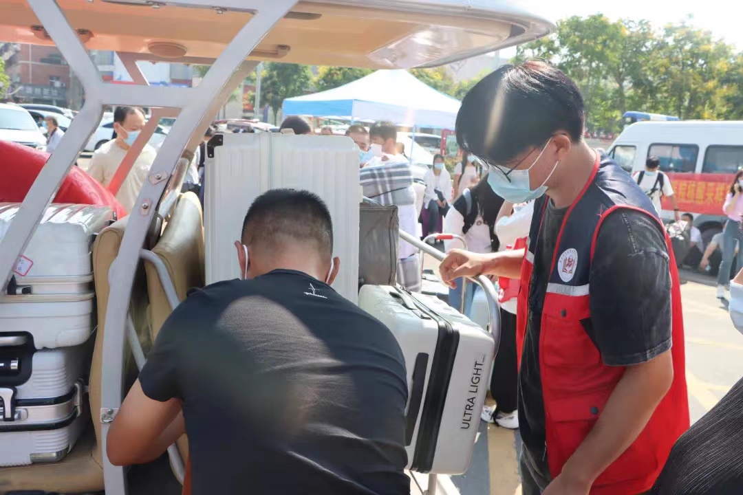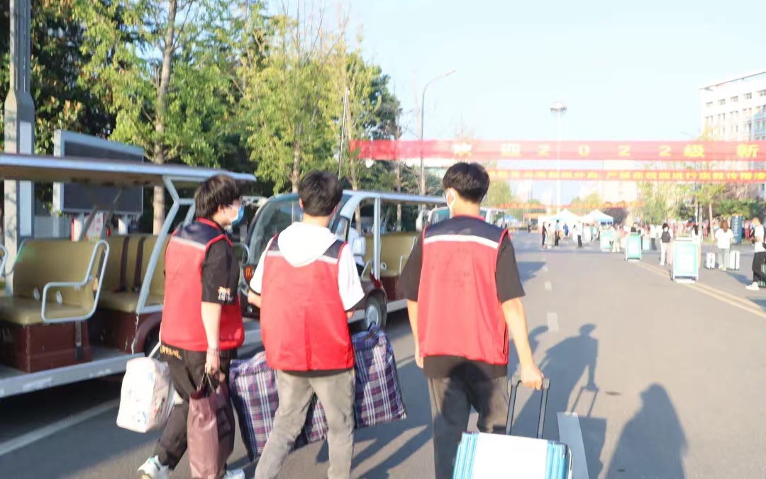 马院萌新陆续进入校园,志愿者们引导新同学完成核酸检测,指引去往宿舍的路线,行李会由“专车”送到宿舍楼下,并由“1+1”志愿者们协助新同学搬运行李。“红马甲”的暖心帮助,让萌新们感受到了来自马院大家庭的温暖,对新的环境不再感觉陌生。