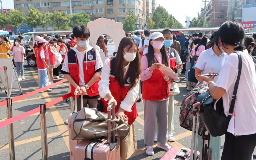 校园外父母挥手与孩子告别,句句叮咛嘱咐“照顾好自己”“有事给爸爸妈妈打电话”,父母的目光跟随孩子的背影进入校园...一幕幕离别的场面,寄予着父母深沉的惦念与关爱,这场景在热闹的迎新氛围中令人格外动情。