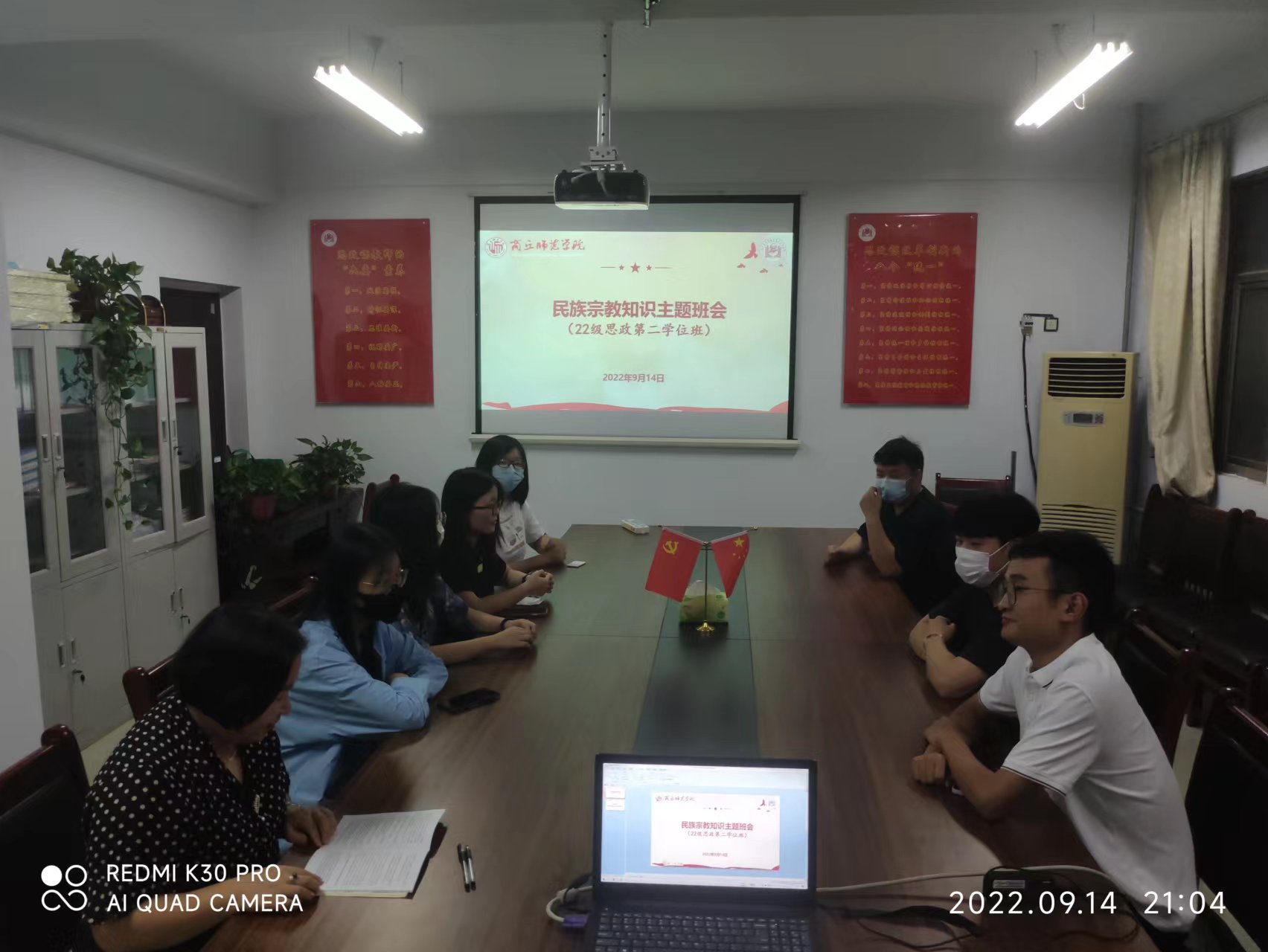 为加强大学生的民族宗教知识,切实提高学生对民族宗教问题的分析判断能力,牢固树立马克思主义宗教观,9月14日晚,威廉希尔官网数据在应天楼809组织开展了民族宗教知识主题班会,思政第二学位22-1班班主任谷慧玲带领班级全体同学参与。