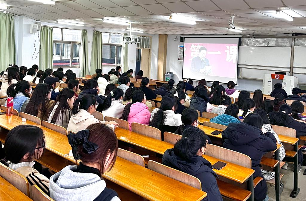 会上,全体学生首先观看了“春季学期开学第一课”视频。视频中,张志坚书记勉励同学们要厚植家国情怀,珍惜抗疫斗争的重大成果,勇敢担负起时代赋予的使命。同学们认真聆听、谨记在心!