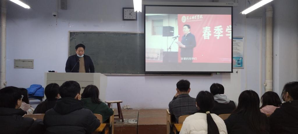在班会上,薛明珠鼓励同学们要脚踏实地,埋头苦干,树立远大理想,以昂扬向上、奋发有为的精神状态开启新征程。