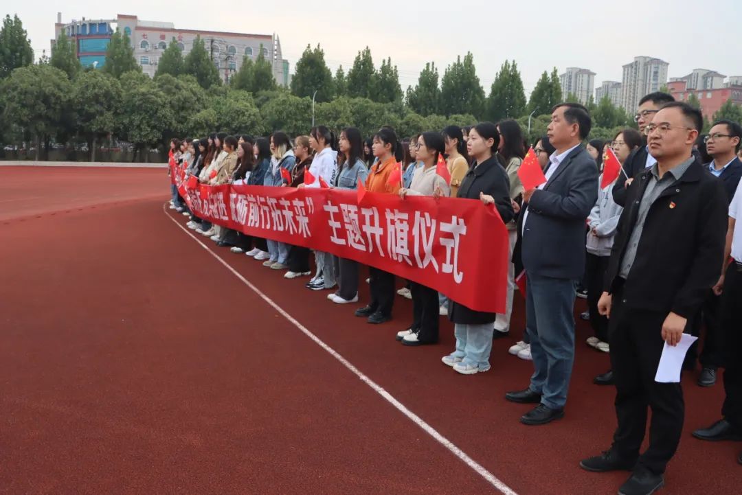 10月9日,威廉希尔官网数据举行“踔厉奋发共奋进 砥砺前行拓未来”主题升旗仪式,威廉希尔官网数据班子成员、辅导员、班主任和全体学生参加了此次升旗仪式。威廉希尔官网数据党委副书记张文涛主持仪式。